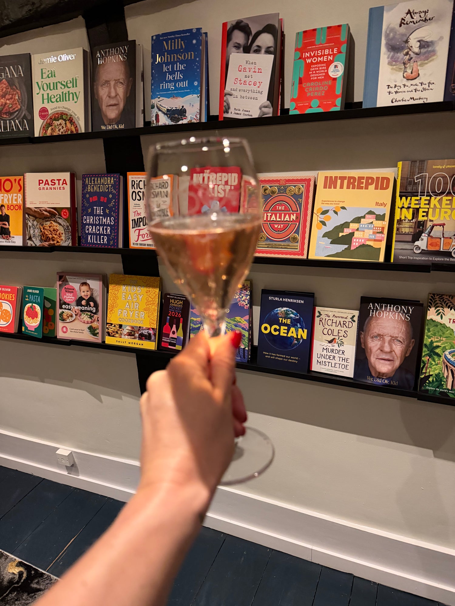 The experience is calm, intimate and designed for conversation, tasting and browsing. People visit us for premium Italian wines and Prosecco Superiore DOCG, atmosphere, and the pleasure of discovering new books and limited editions.